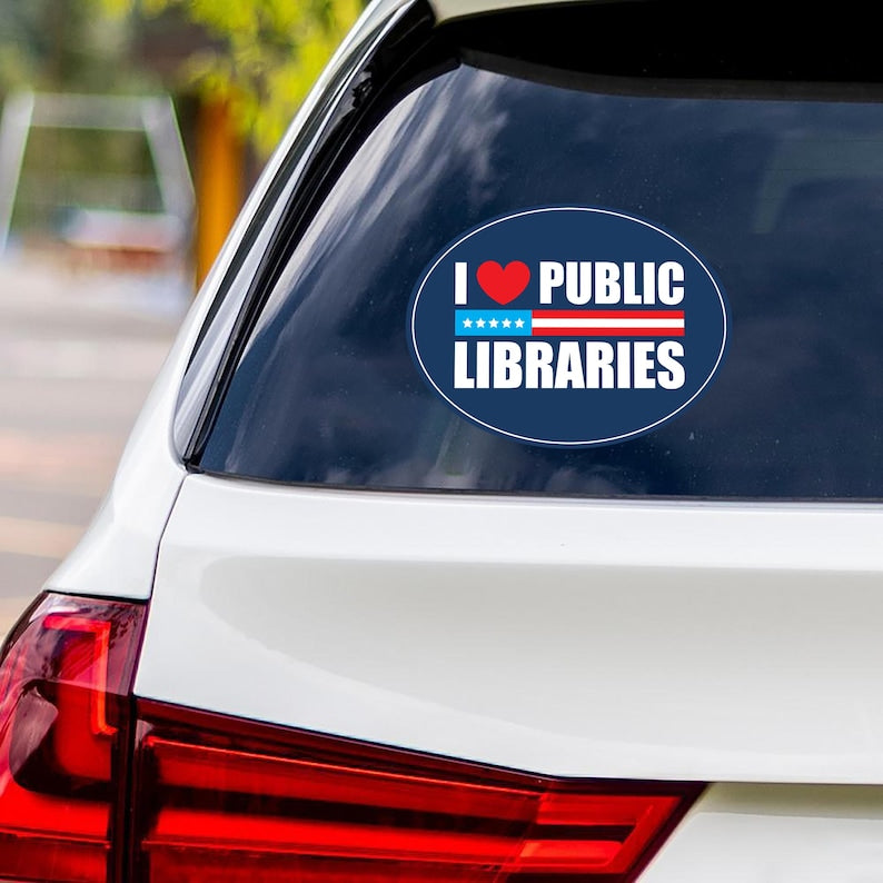 I Love Public Libraries Vinyl Sticker, No Kings In America Protest, Anti-Trump, No Kings, Resist Fascism Car Bumper Sticker, 6" x 4.5"