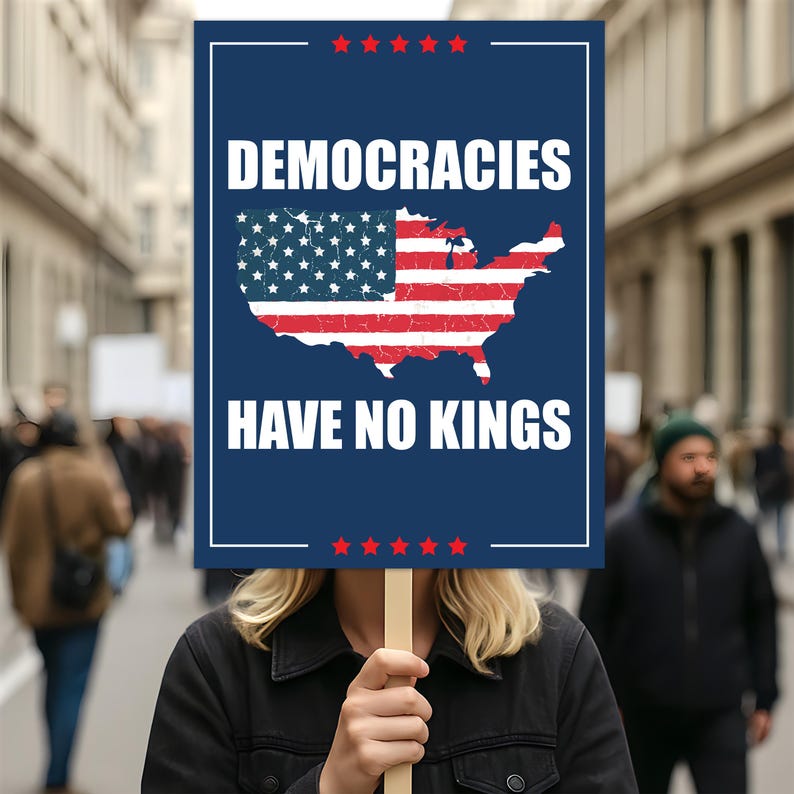 No Kings In America Protest Sign, Anti-Trump Resistance, Democracy Not Oligarchy Political Activist Poster, Resist Fascism Rally Sign.