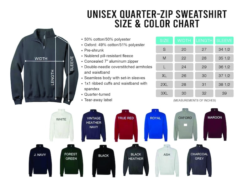 • Unisex quarter zip sweatshirt — size up for relaxed fit