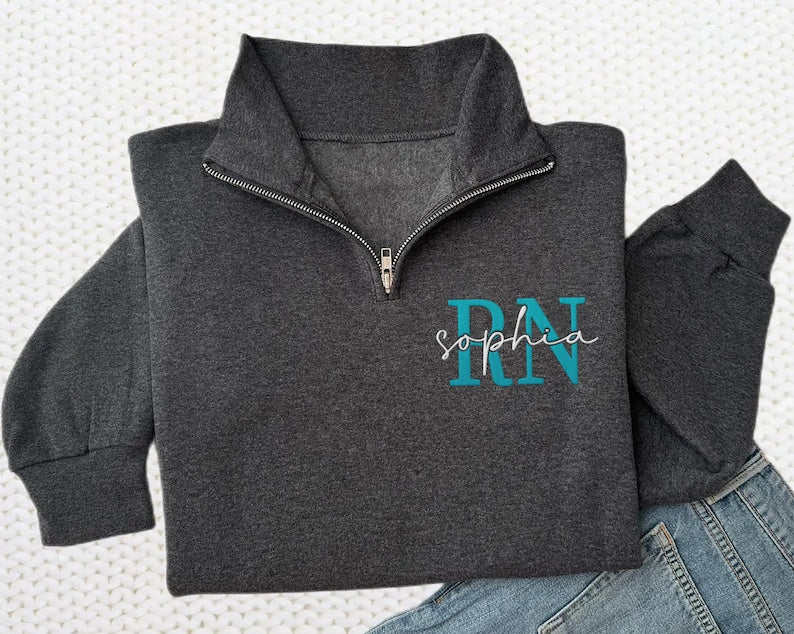 Embroidered Nurse Quarter Zip Sweatshirt, Nursing School Gift, Unisex Nurse Pullover, Healthcare Graduation Sweatshirt, Nurse Jacket