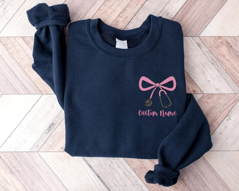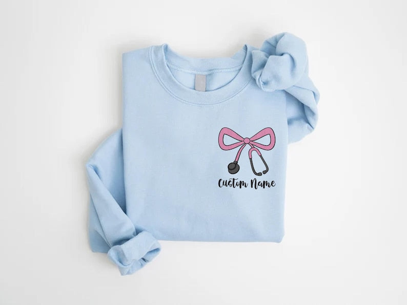 Custom Nurse Embroidered Sweatshirt, Bow & Stethoscope SweatShirt, Personalized Nurse SweatShirt