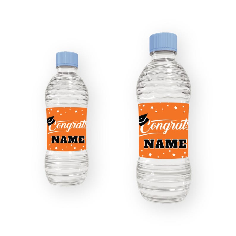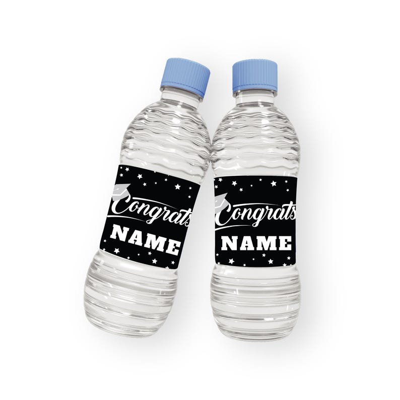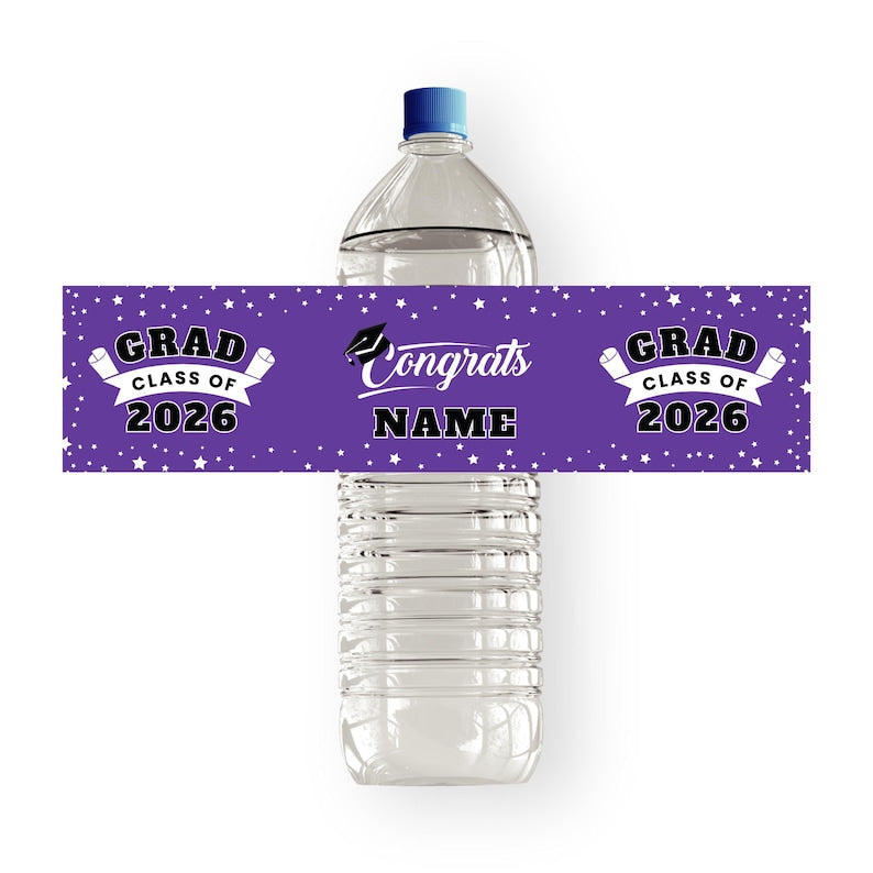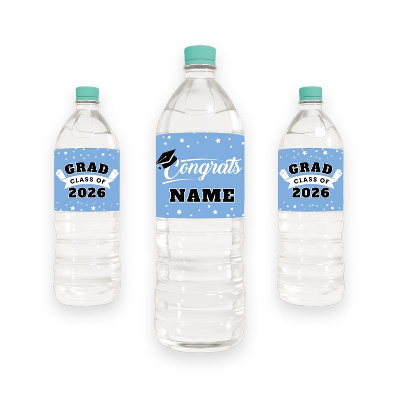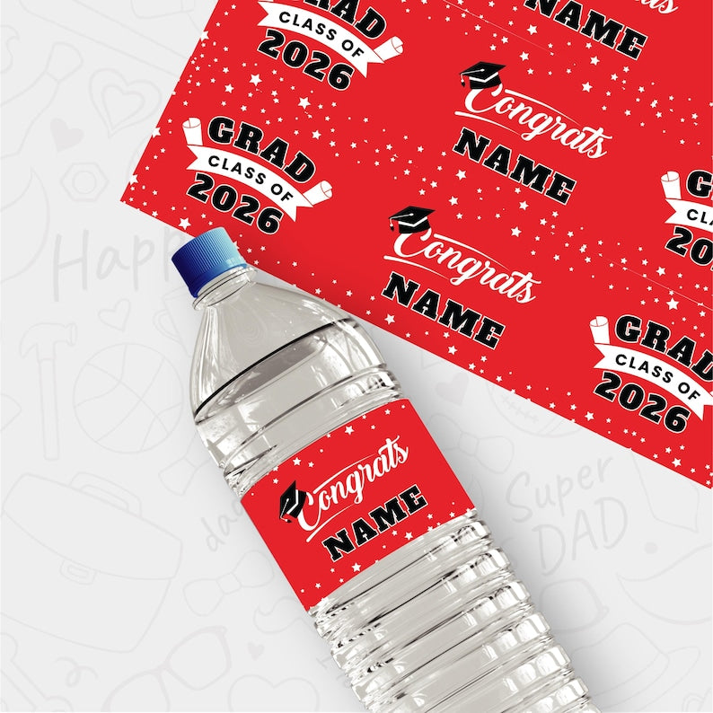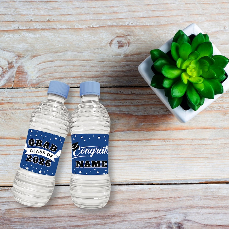 25 Pcs Custom Graduation 2026 Water Bottle Labels, Personalized Class of 2026 Graduation Party Decorations for Table, Waterproof Grad Favors. These graduation water bottle labels are incredibly easy to use. Just peel and stick the label around the water bottle and enjoy your DIY decorations! The waterproof adhesive ensures that the labels will stay put no matter what kind of conditions they are exposed to.