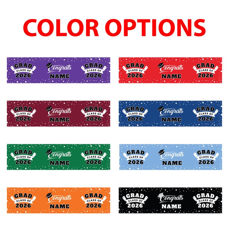 Make your 2026 graduation party unforgettable with these 25 custom graduation water bottle labels. Perfect as table decorations, they feature the class year of 2026 in a modern font and are personalized to include your graduate's name. With their waterproof design, they're sure to withstand any outdoor celebration or use them to dress up bottles at indoor events! Add an extra special touch with unique and affordable favors that everyone will be talking about for years to come.