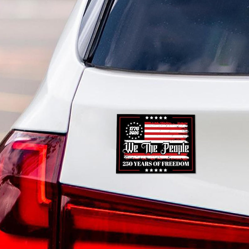 250 Years American Car Magnet, Patriotic 250th Anniversary Fridge Magnet, Celebrate Independence Liberty National Pride Gift, 6" x 4.5"