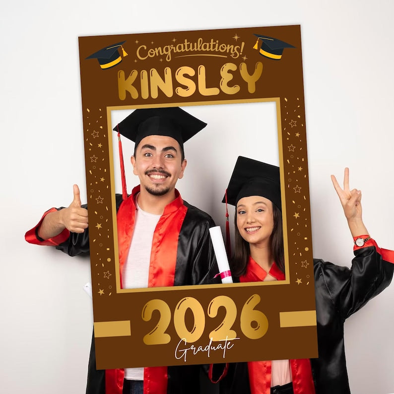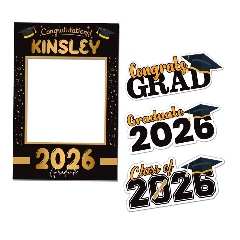 Treat Your Grad to the Ultimate Graduation Celebration With Our 4 Pack Personalized Graduation 2026 Selfie Frame Photo Booth Props! This Bundle of Props Makes It Easy to Create the Perfect Social Media Post and Gives Them Bragging Rights on Their Big Day. The “Class of 2026”, “Congrats Grad”, and “2026 Graduate Cutout Sign” Will Liven up Any Party or Photo Shoot.