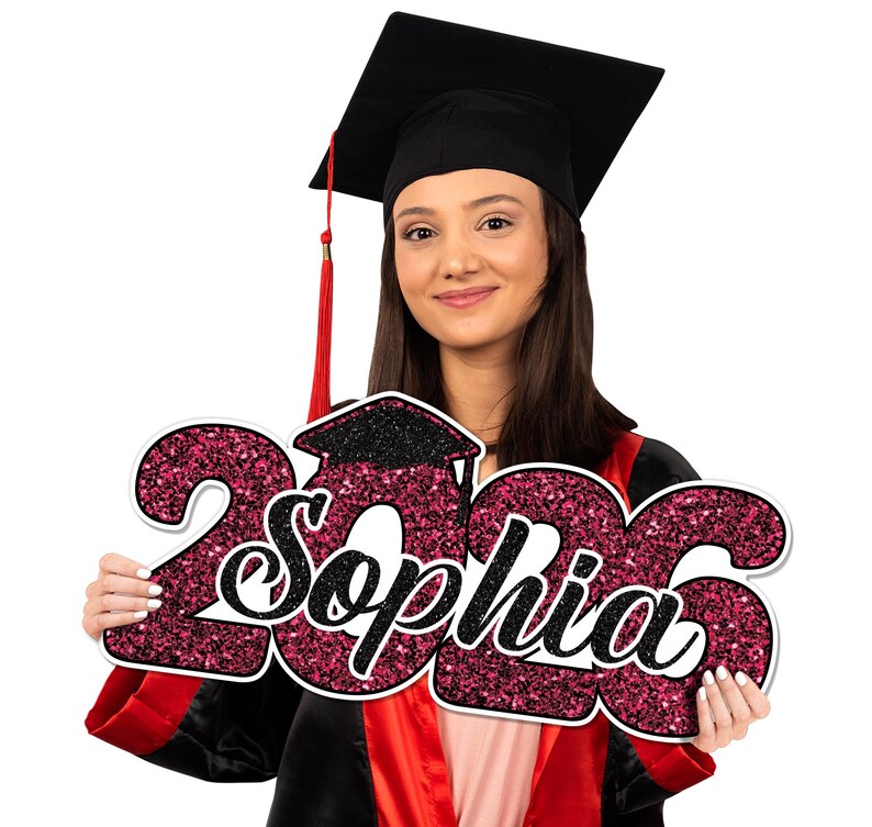 Personalized 2026 Graduation Sign, PVC Custom Name Senior Graduation Party Prop Sign, High School College University Medical Law School Graduation Gift. Made from durable PVC, this custom text cutout is the perfect addition to your graduation party or photo booth. Tailor it with any text to match your theme and make your grad's big day unforgettable.