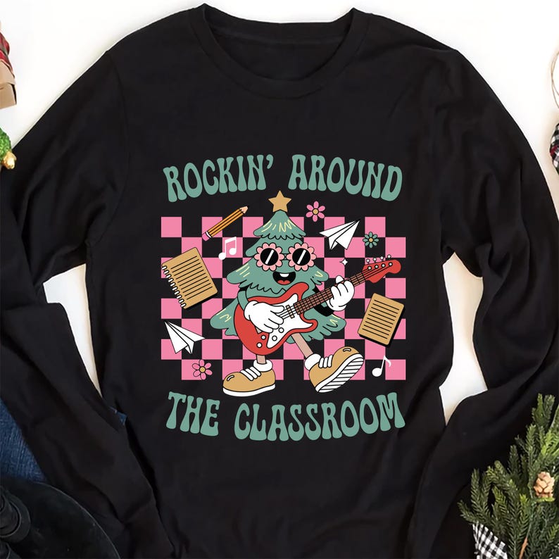 Rockin Around the Classroom Christmas Teacher Long Sleeve Shirt, Teacher Christmas Long Sleeve Shirt