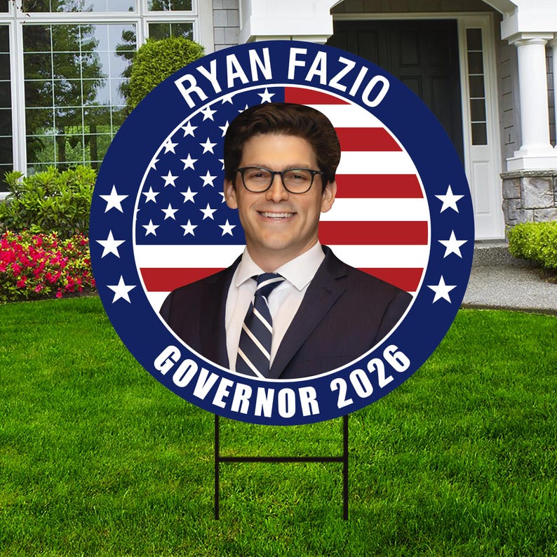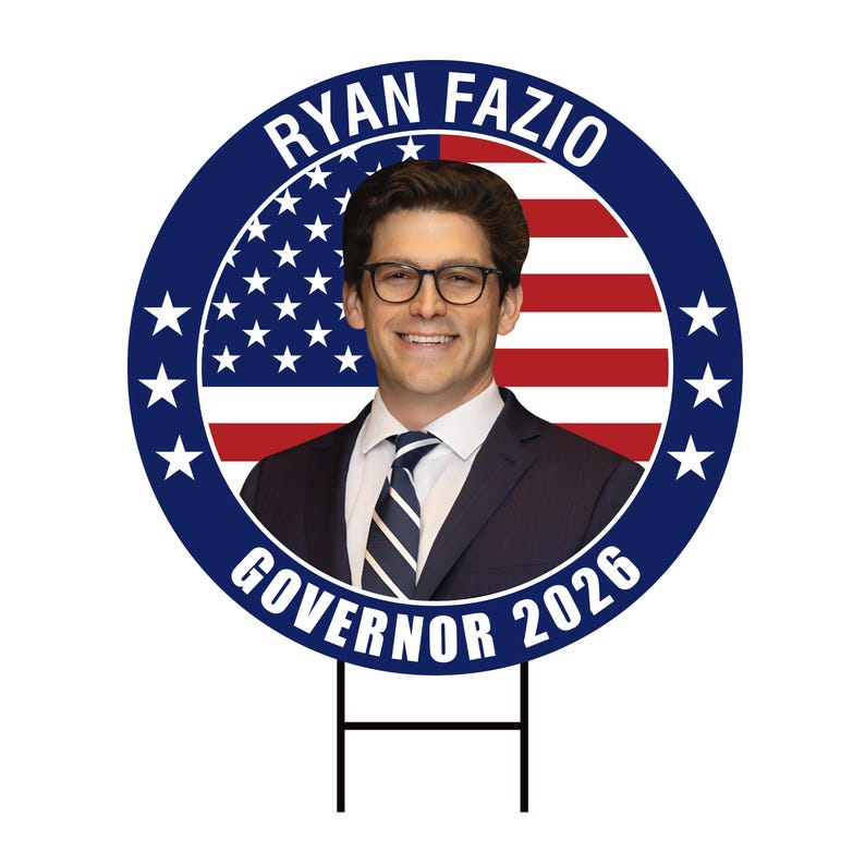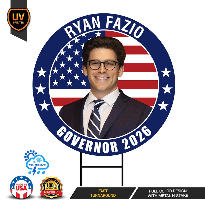 Ryan Fazio Governor 2026 Yard Sign Is an Engineer Grade Professional Appearance.