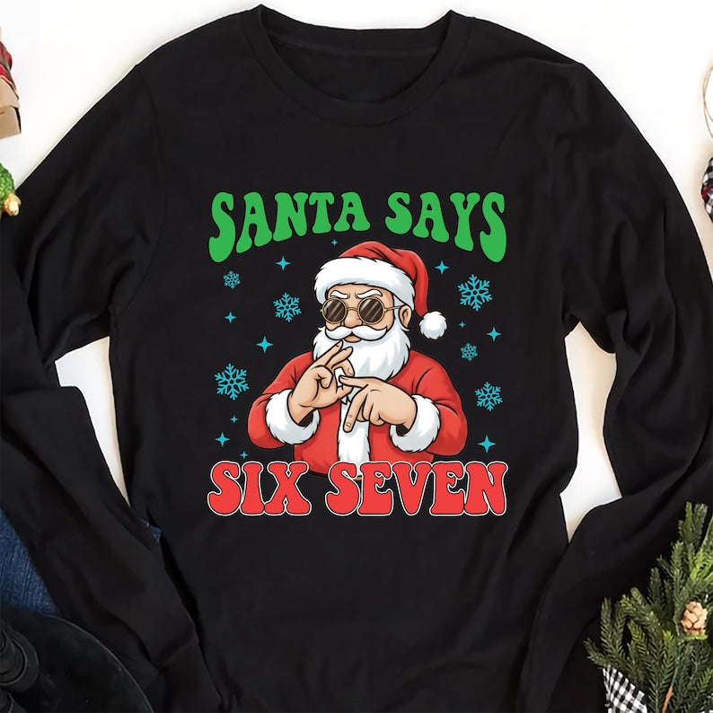 Join the trend with our Santa Six Seven Christmas Shirt! Inspired by the viral phrase that’s taking social media by storm, this funny and festive tee adds humor and holiday cheer to your Christmas celebrations.
