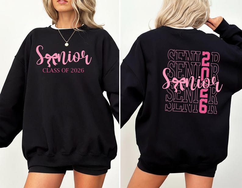 Senior 2026 Sweatshirt, Coquette Bow Graduation SweatShirt, Class of 2026 Tee, Pink Red Blue Senior SweatShirt