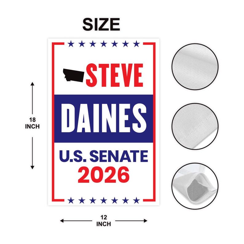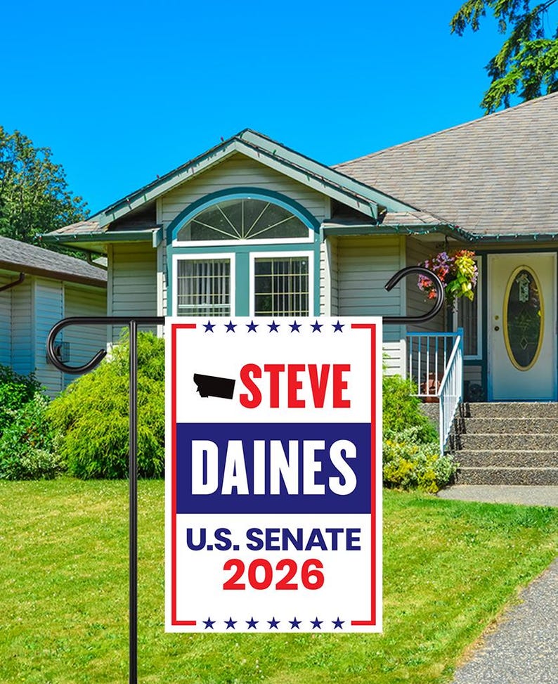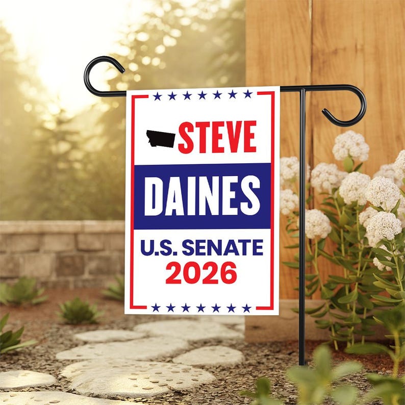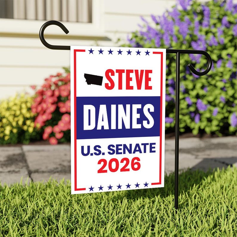 Steve Daines For Montana Senate 2026 Garden Flag, Double Sided, 2026 Senate Flag, Elections Flag, Republican Sign, Race Red White & Blue Flag.