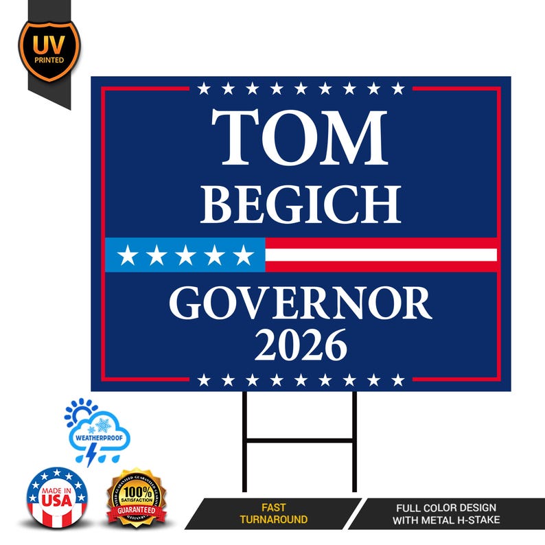 Tom Begich Governor 2026 Yard Sign Is an Engineer Grade Professional Appearance.