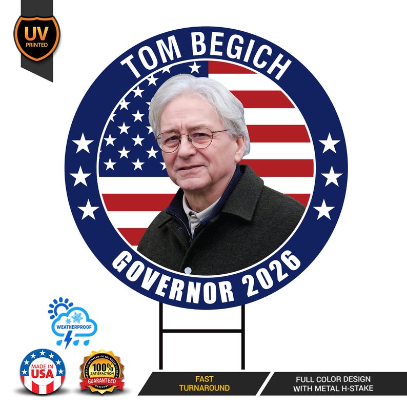 Tom Begich Governor 2026 Yard Sign Is an Engineer Grade Professional Appearance.