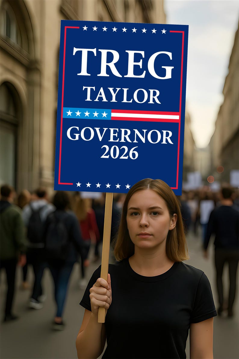 Treg Taylor For Alaska Governor 2026 Election Sign, Political Campaign Sign, Republican party, Governor Election 2026 Race Poster Sign.