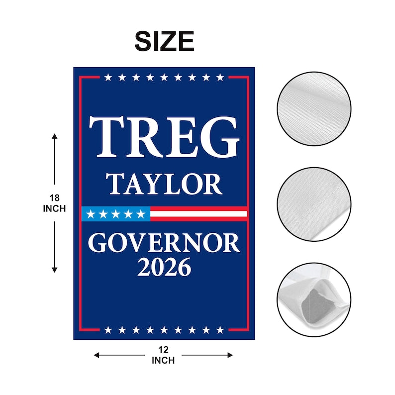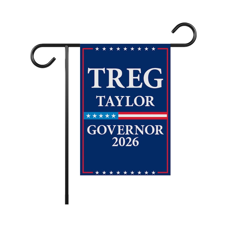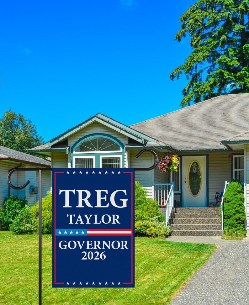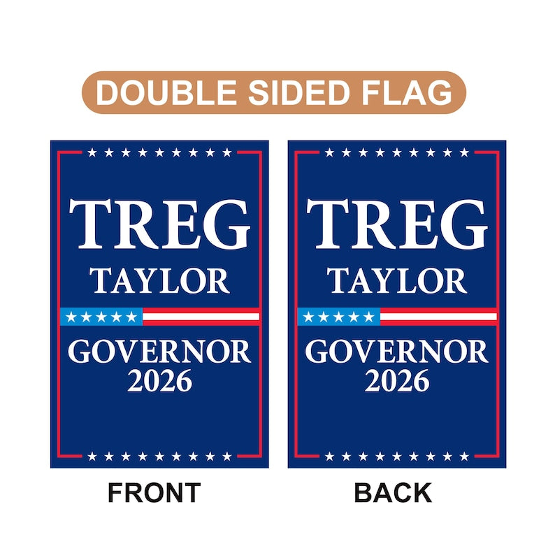 Treg Taylor For Alaska Governor 2026 Garden Flag, Double Sided, 2026 Governor Flag, Republican party, Elections Flag, Race Red White & Blue Flag.