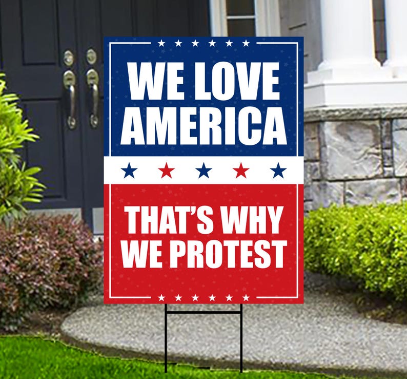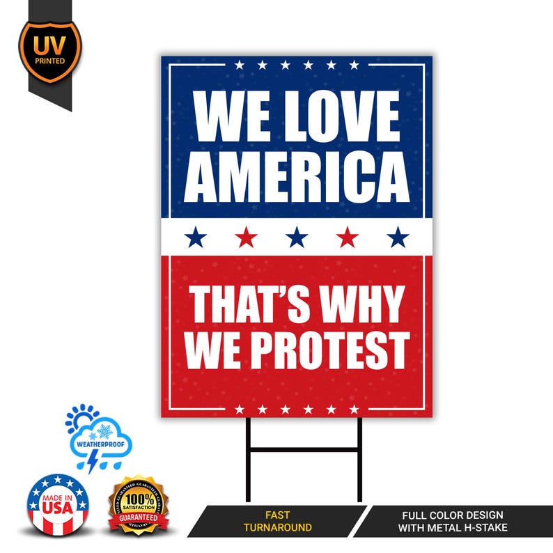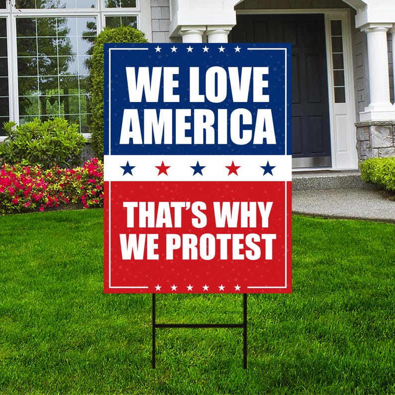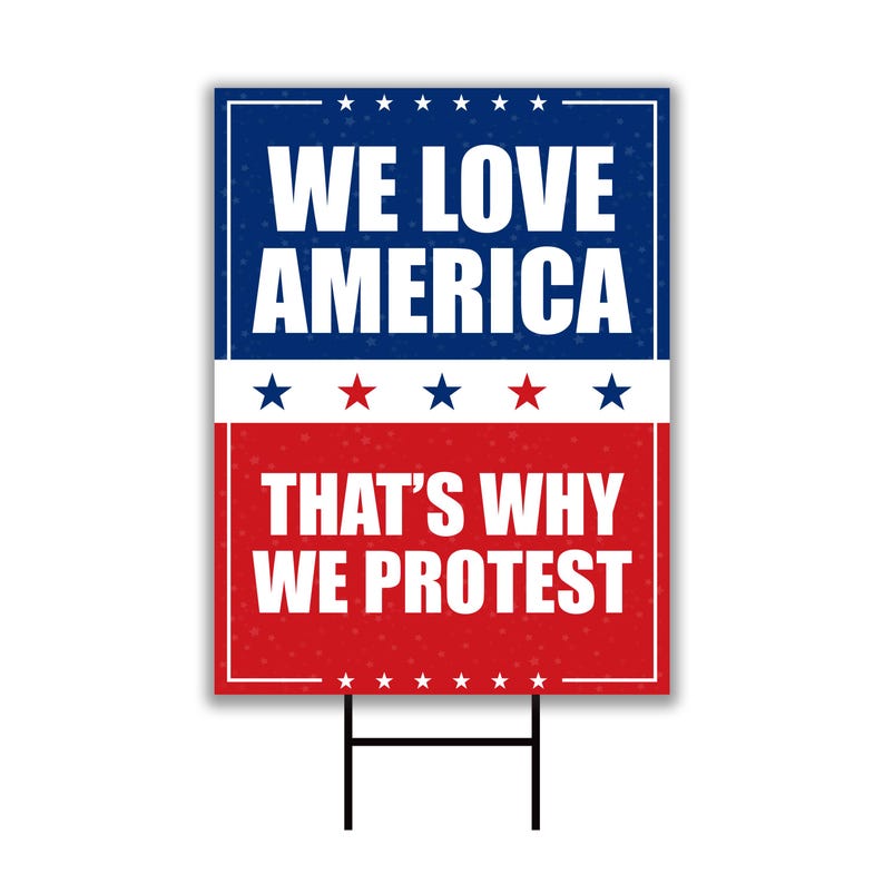 We Love America Protest Yard Sign - Anti-Trump, No Kings In America, Protect Democracy, Anti Fascist Yard Sign with Metal H-Stake