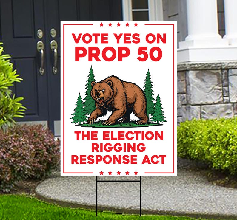 Yes on Prop 50 Yard Sign, Election Rigging Response Act, California Political Reform Sign, Anti-Gerrymandering Yard Sign with Metal H-Stake